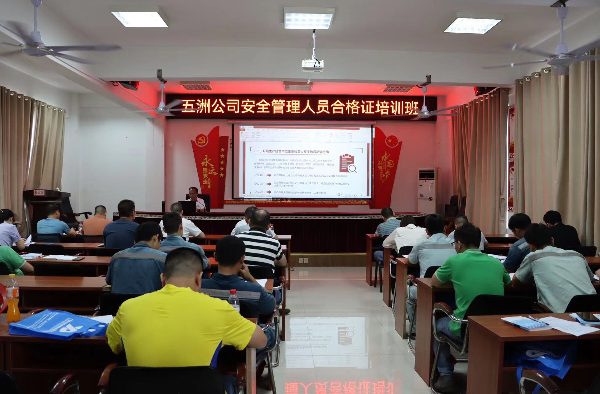 6月3日,五洲公司組織觀看2024年安全生產(chǎn)月主題宣傳片《人人講安全,個(gè)個(gè)會(huì)應(yīng)急》并開展專題學(xué)習(xí),同時(shí)邀請(qǐng)到廣西希大技安安全技術(shù)服務(wù)有限公司安全指導(dǎo)老師現(xiàn)場(chǎng)授課,授課內(nèi)容包含安全生產(chǎn)管理的基礎(chǔ)知識(shí)、治本攻堅(jiān)三年行動(dòng)知識(shí)、《廣西壯族自治區(qū)安全生產(chǎn)條例》等多個(gè)方面。通過理論授課和案例分析相結(jié)合的方式,幫助參訓(xùn)安全管理人員更好地掌握安全生產(chǎn)管理相關(guān)知識(shí),深入學(xué)習(xí)風(fēng)險(xiǎn)辨識(shí)方法和風(fēng)險(xiǎn)管控措施。啟動(dòng)儀式結(jié)束后,全體人員在“人人講安全、個(gè)個(gè)會(huì)應(yīng)急--暢通生命通道”主題橫幅上鄭重簽名并合影留念。